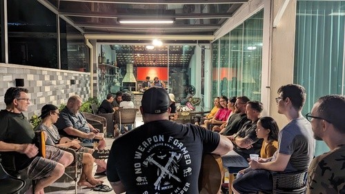 In 2017, members of Calvary Chapel Palm City, Kyle and Krista Fox, were sent by the church to the city of Belem, Brazil, where they labored to plant a church in the heart of the city. After years of ministry and the successful establishment of Calvary Chapel Belem, the Fox family departed Brazil in 2023 and continue to do ministry in California through their non-profit. Dia Gratia. They left Calvary Chapel Belem in the care of two nationals they discipled for years, Kelvin and Heloisa Bruder. Today, Pastor Kelvin and Heloisa continue to serve at Calvary Chapel Belem. They have weekly prayer meetings, men's & women's discipleship groups, home fellowships, and a ministry dedicated to serving Venezuelen refugees and victims of human trafficking.